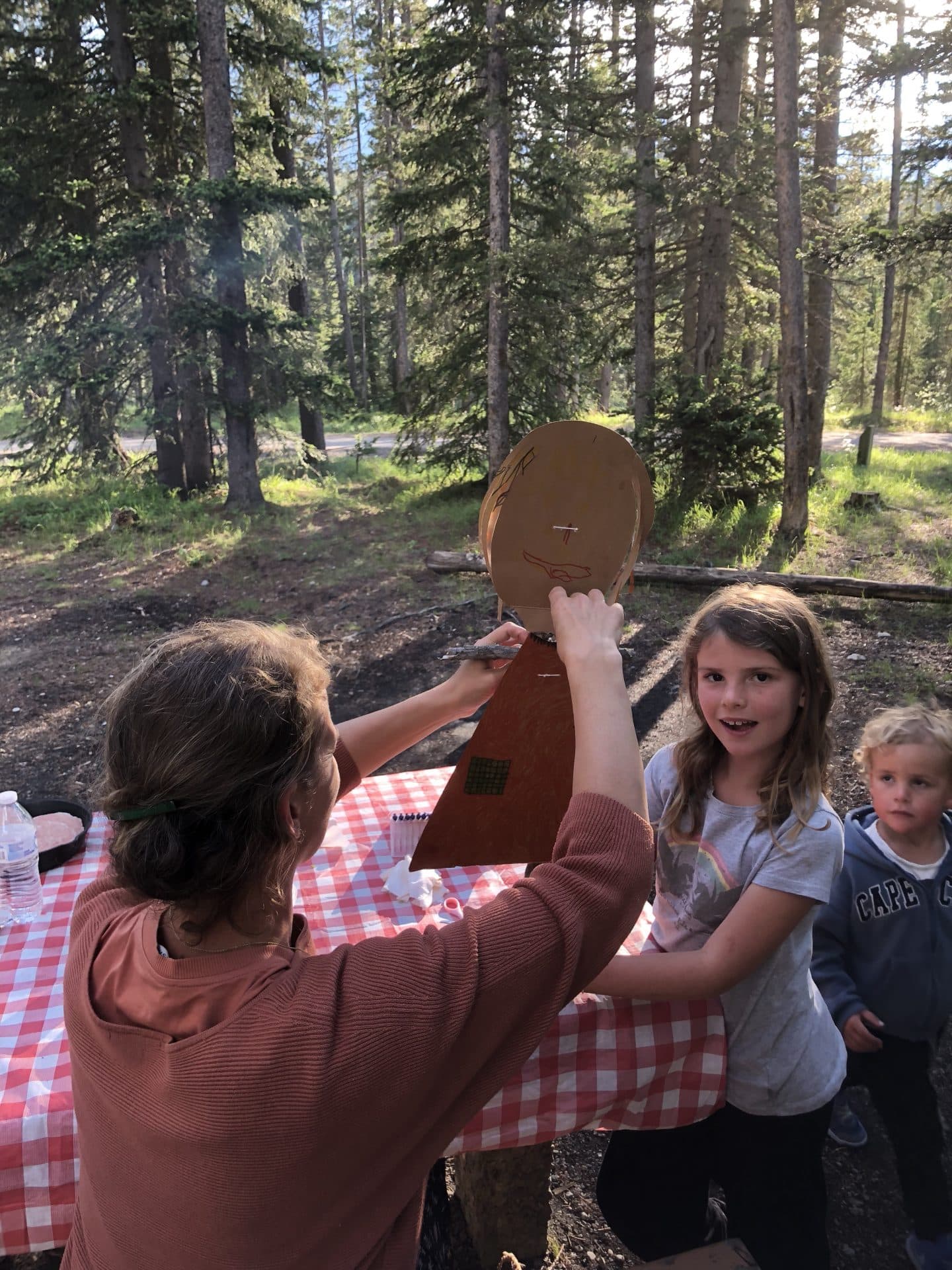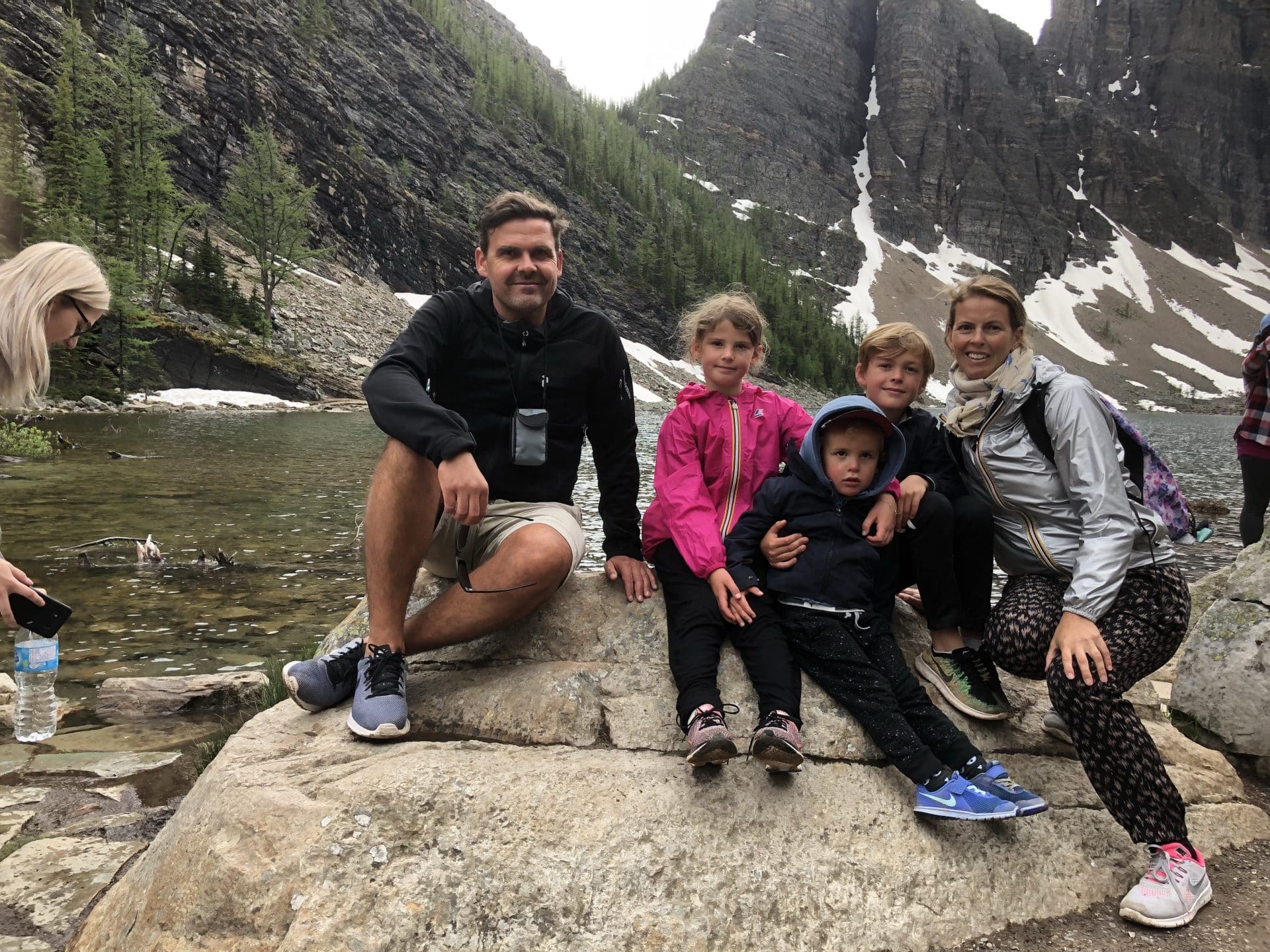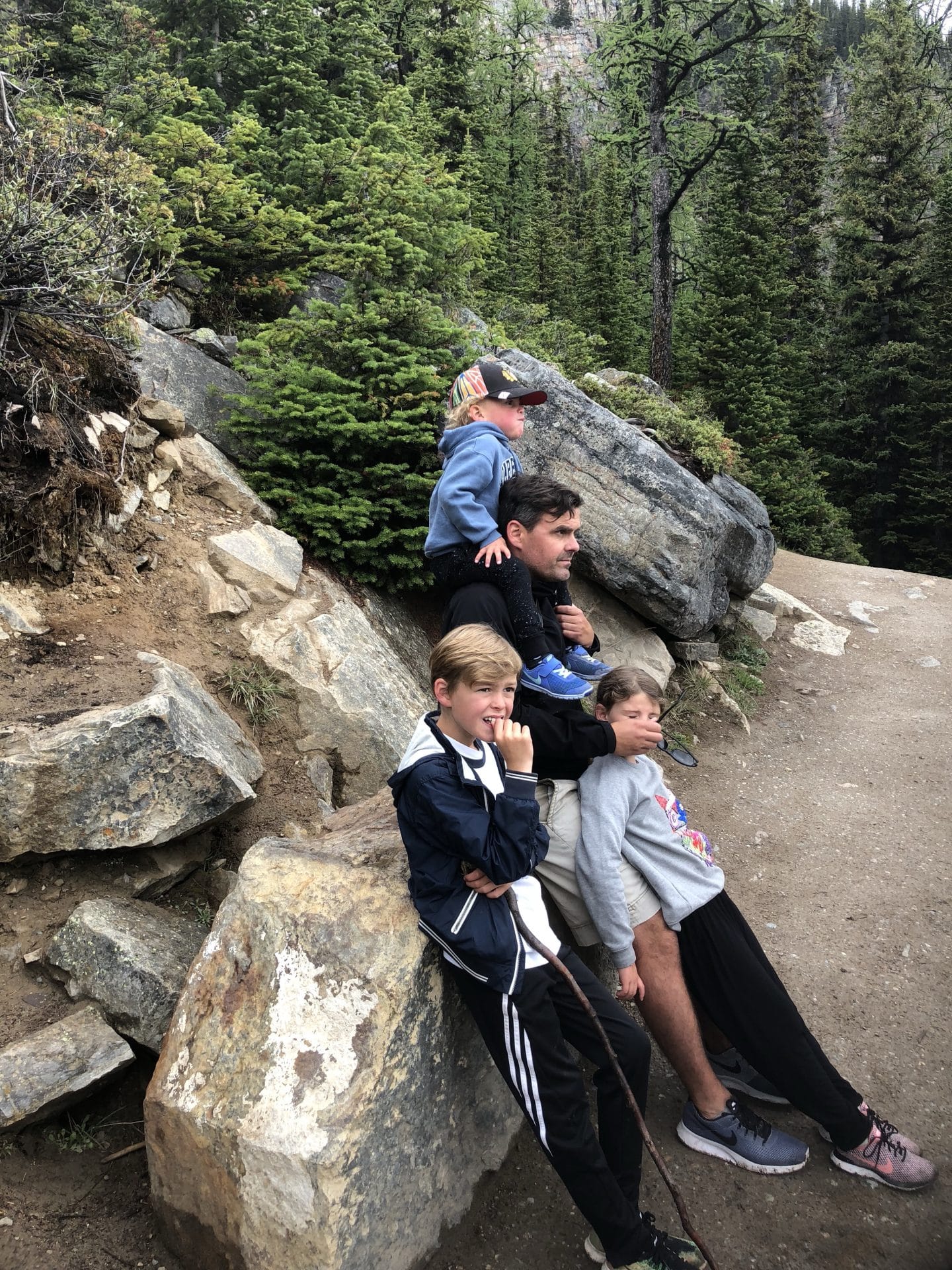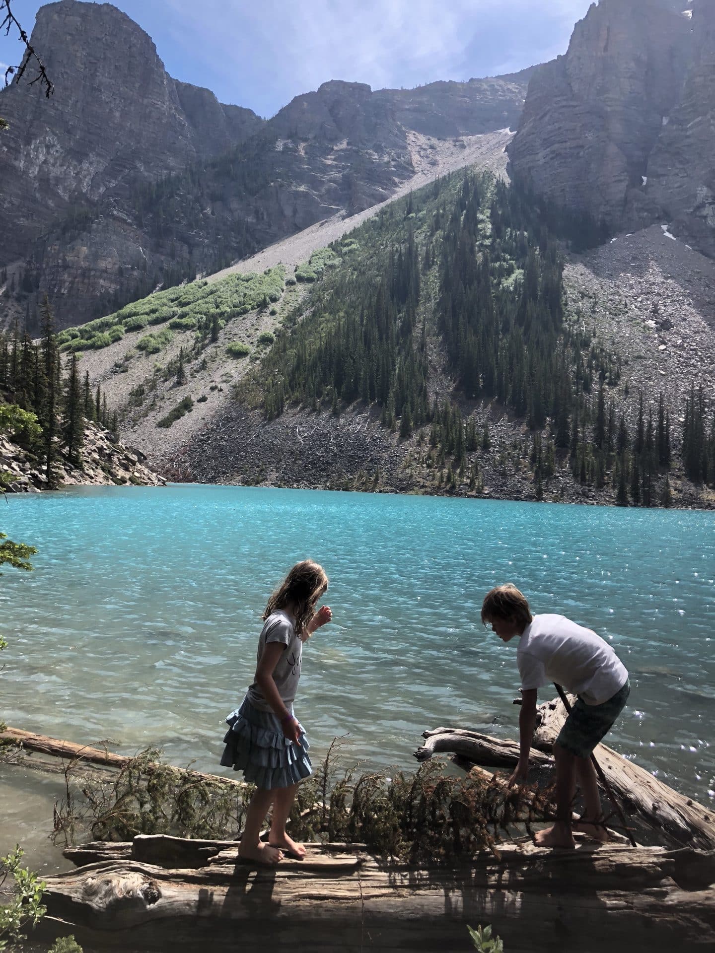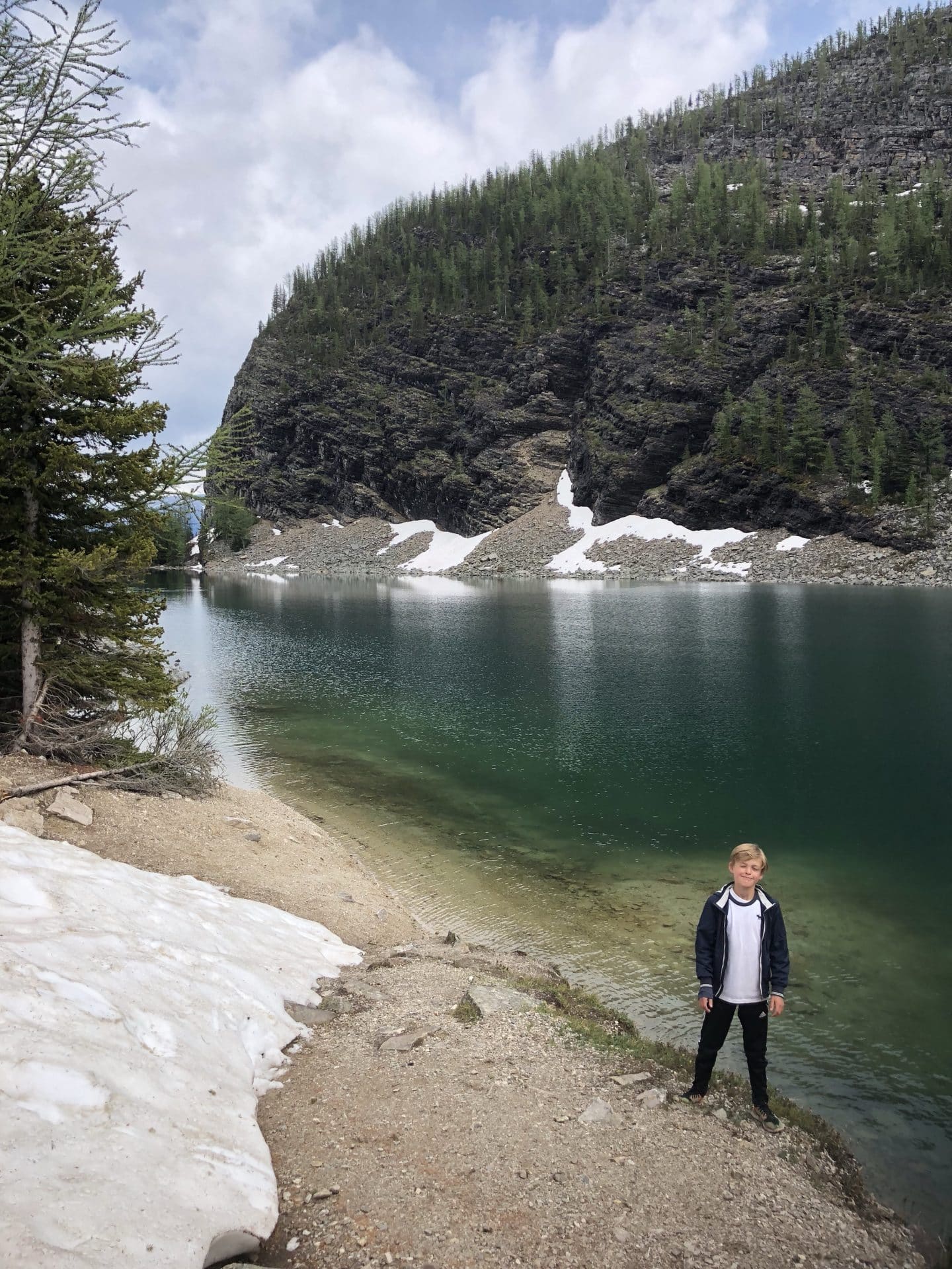 Næste morgen var målet Lake Louise. Vi kom til den meget smukke og udefinerbare blå-grønne farvet sø. Det var virkelig mindst lige så smukt som man ser på billeder. I ført vandregear begav vi os ud på den 3,7 km lange hike op i bjergene til Lake Agnes teahouse. Alle tre børn klarede turen op super flot, Walter hjulpet på vej på fars skuldrer. Vi kom op til Lake Agnes og det lille teahouse. Et tehus, hvor der ingen elektricitet er og vandforsyning. Alt bliver båret op hver morgen og maden lavet over bål, mens vandet til teen bliver hentet i søen. Super fint lille sted og idyllisk, at sidde med udsigten til Lake Agnes og spise scones og drikke te-lige som det hører sig til. Ungerne hyggede sig med de små jordegern, der kravlede rundt og håbede på en bid brød. Inden vi begav os ned ad igen, skulle vi lige have en lille snebolds kamp, da der flere steder lå klatter af sne. William og Frida tog sig en kælketur på numsen. Velankommet til campingpladsen gik Frida og Walter igang med at lave en heks i pap til vores Skt hans bål-vi havde nemlig ikke bål forbud som hjemme i Danmark. Til shu-bi-duas midsommervise grillede vi marshmallows og så heksen blive futtet af.