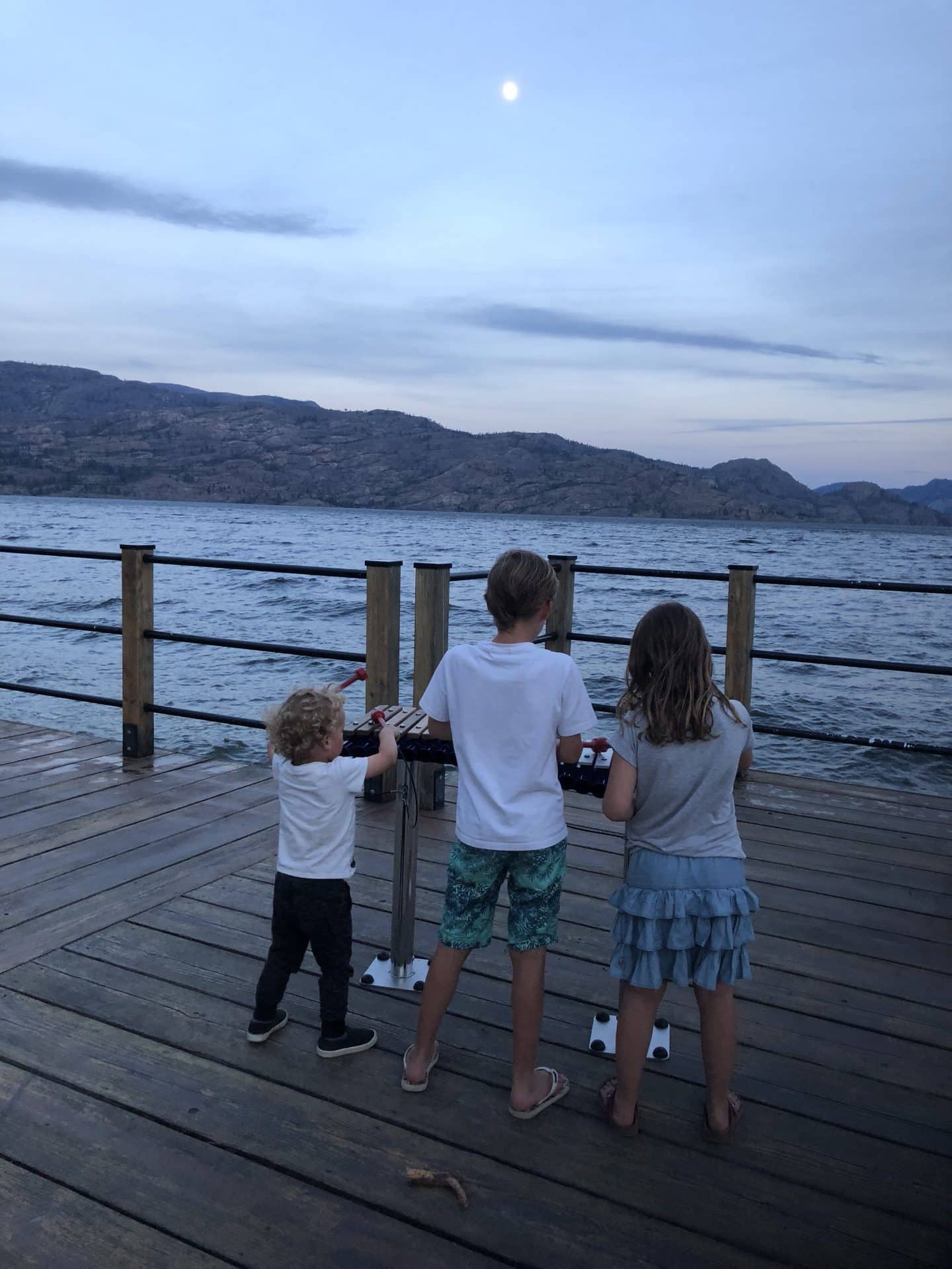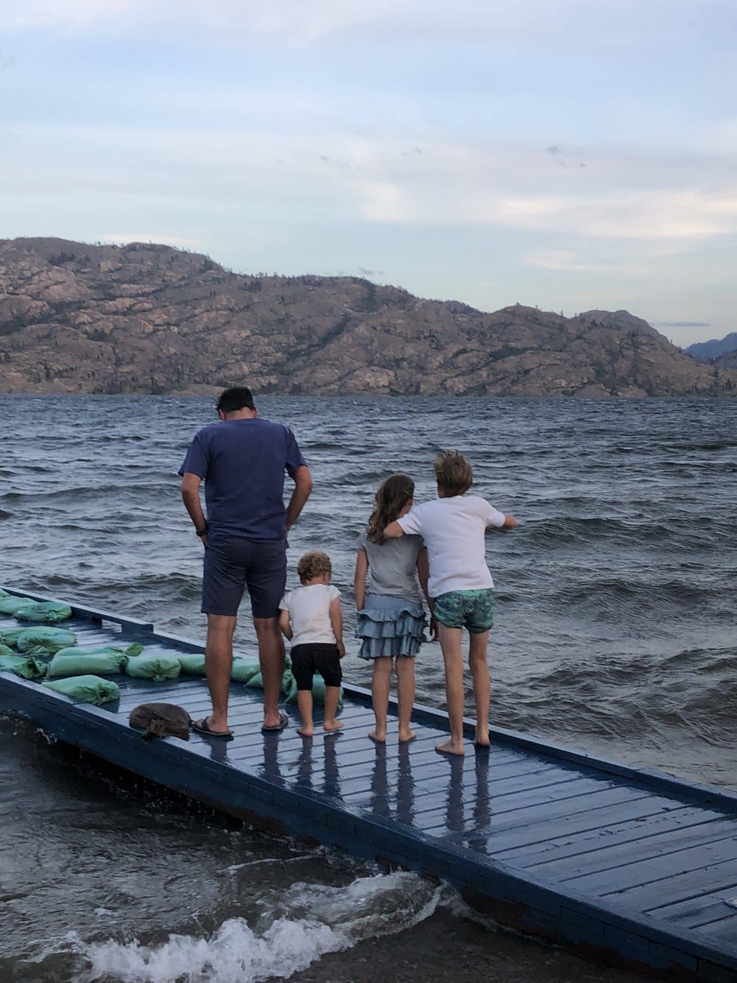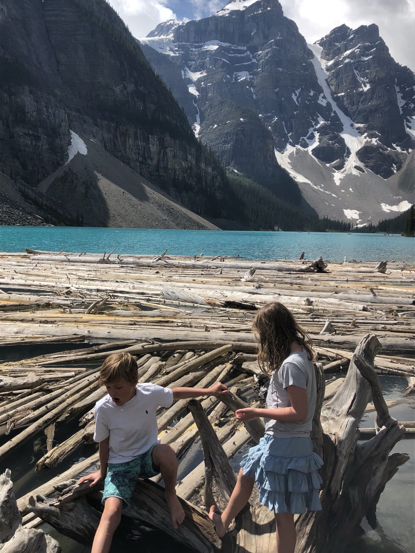 Søndag gjorde vi stop ved den anden smukke sø Lake Moraine. Lake Moraine er mindre end Lake Louise, men om muligt smukkere. Lake Moraine er på en eller anden måde mere uspoleret og knap så befolket med turister. William og Frida spottede straks en masse tømmer, som de måtte ud og klatre på og bygge tømmerflåde af. Turen gik nu videre væk fra “the Rockies” ned mod dalen Okanagan Valley. Vi skulle bo i Peachland lige ud til Okanagan Lake. Okanagan går for at være det mest frodige og varme område i hele Canada. Her ser man vinmarker og frugtplantager ligge side om side. Vi fik lidt lunere vejr, til trods for, at vi første nat blev vækket af det vildeste stormvejr med lyn og torden. Langs søen var man også forberedt på storm, da det lå sandsække på alle badebroer og bænke langs bredden.