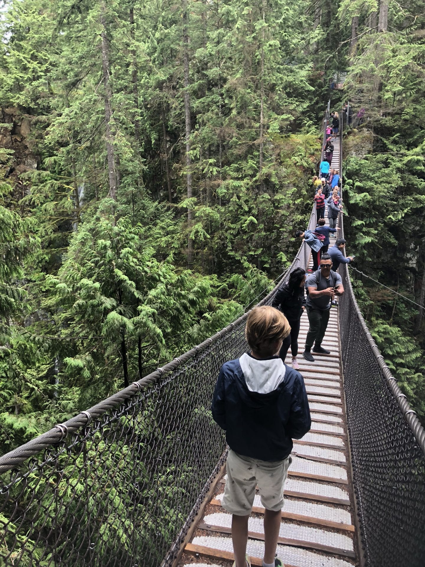 Sidste dag i Vancouver startede med gåtur ved Lynn Valley, hvor vi skulle krydse en hængebro over et vandfald. En hængebro som man ville begynde, at renovere her i 2018, da konstruktionen ikke var blevet forbedret siden den blev bygget i 1910. Denne info fik man først efter at broen var krydset. Det var med tungen lige i munden og ikke for meget hoppen på broen, at vi alle kom helskindet over. Så gik turen ned til Downtown Vancouver, hvor vi sejlede over fra North Vancouver siden. Første stop var Gastown, den oprindelige bydel i Vancouver, der stadig i dag er brostensbelagt og bryster sig af sit gamle steam watch, der står på et gadehjørne og sprøjter damp ud. Herfra tog vi bussen til Granville Island som er en halvø, der ligger under en stor bro fra Downtown. Det er lidt som en slags papirøen hjemme i København, med spisesteder, gallerier, specialbutikker og havneliv lige midt i hjertet af Vancouver. Vi spiste frokost og hyggede lidt rundt, ungerne tilbragte det meste af tiden i Kidsmarket-et hus med flere legetøjsbutikker og andet godt til børn. Vi bevægede os nu tilbage til North Vancouver og spiste sushi på en restaurant som vi havde været på et par gang for to år siden.