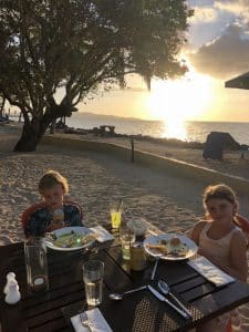 Efter at have tilbragt nogle dage på hovedøen, skulle vi nu videre ud på en af de mange populære trope-øer som Fiji bryster sig af. Man taler om to ø-grupper som er de mest populære-Yasawa Islands og Mamanuca Islands. Den sidstnævnte ø-gruppe er også den, der ligger nærmest hovedøen. Vi skulle til en ø der hedder Malolo Lailai som tilhører en af Mamanuca Islands og som også er naboø til der, hvor Cast Away filmen med Tom Hanks er optaget. Det viste sig at der på vores resort lå den tømmerflåde som blev brugt i filmen da han sejlede væk fra øen. Vi kom til vores nye bestemmelsessted Plantation Island Resort med katamaran fra Denerau tæt ved Nadi. Turen over tog ca. 45 minutter. Vi blev budt stort velkommen med sang og musik da båden lagde til kajs, og fik alle hængt en velkomst halskæde med muslingeskaller om halsen. Det var en dejlig trope-ø som mødte os med krystalklart vand, palmer og hvide sandstrande. Malolo Lailai var i tidernes morgen kun benyttet som kokosplantage, deraf navnet. Siden hen blev øen opdelt i tre resorts, en golfbane samt en lille landingsbane til helt små private fly. Plantation Island resort hvor vi skulle bo var uden tvivl det største og aller mest børnevenlige. Der var tre swimmingpools, hvoraf en med vandrutsjebane, der var masser af vandsports aktiviteter som kajak, padleboard, hobbiecat og så to store flyde pontoner med rutsjebane i havet. Derudover var der en super kids-club som især Walter og Frida benyttede sig af. Ungerne nød at der var så mange børn de kunne lege med og fandt hver især nye venner. William blev ven med Arthur fra Australien, Frida blev slyngveninde med Annabell også fra Australien og Walter fandt to nye venner i Nate fra Australien og Hugh fra New Zealand. Der var rigtig mange børnefamilier og de var stort set alle fra Australien eller New Zealand, hvis der var andre nationaliteter var det typisk nogle, som så boede i et af de to lande. Kasper talte en dag med manden i receptionen, som var helt benovet over at tale med en fra Danmark. Han mente ikke at de nogensinde havde haft andre danskere boende, han havde ihvertfald aldrig mødt nogle fra Skandinavien før og kaldte det once in a life time experience… Stedet passede os perfekt-det var eksotisk, der var flot at snorkle, der var dykkercenter til William og Kasper, der var et væld af børn og børnefaciliteter og så var halvpensionen, der bestod af en virkelig god buffet. Hver dag var der forskellige aktiviteter for børnene i kids-club. De lavede t-shirts, krabbe-væddeløb, frø-væddeløb, kokos-slik, sandslots konkurrence og alt muligt andet. Dagens højdepunkt var 18.30 hvor faklerne blev tændt på stranden af en lokal, selvfølgelig iført det traditionelle bastskørt, der løb rundt med en fakkel med børnene i hælene. Det samme gentog sig hver aften og børnene elskede det. Med børnene aktiveret havde Kasper og jeg nu lidt mulighed for at få læst lidt i bøger, hvilket vi ellers ikke har været så flittige til. Det var en win-win for os alle. Vi samlede kokosnødder og mangofrugter fra de mange eksotiske træer rundt om på stedet og nød det alle i fulde drag.
