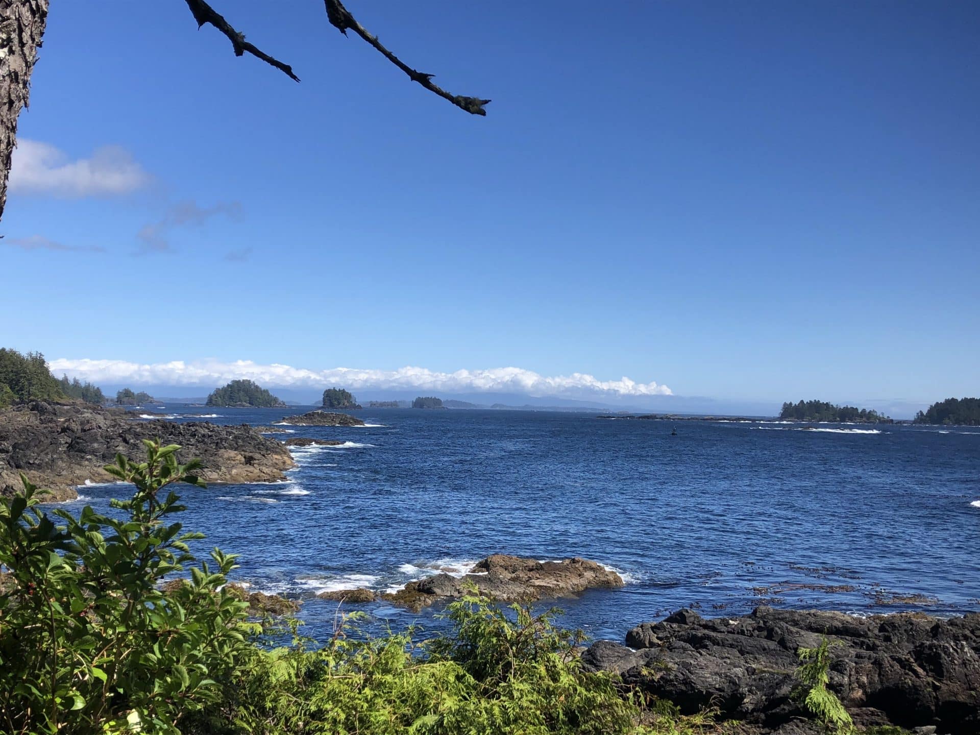 Tidlig op lørdag morgen kl 05, for at nå den første færge fra Vancouver til Vancouver Island. Vi havde booket færgeoverfart for flere måneder siden, men et par dage før afgang fik vi mail om, at færgen var indstillet pga tekniske problemer. Der var ikke andre ledige overfarter, så vi var stand-by til lørdag morgen kl 06:30, som vi heldigvis kom med. Færgen lagde til kaj på østkysten af øen og de første 3 nætter skulle vi bo på vestkysten. Vi krydsede derfor øen ad den eneste vej, der går hele vejen tværs gennem øen. En meget snørklet og bjergrig vej. Første stop var kaffe i Coombs. Coombs er et sjovt hus med alverdens ting og sager og en hyggelig kaffebar. Det lyder måske i sig selv ikke specielt sjovt, men det der gør det anderledes er, at der går geder rundt på taget og græsser. Vi ankom til Ucluelet som er en af de to byer på vestkysten, hvor der er asfalteret vej til. Først i 1972 blev vejen her til asfalteret, og indtil da kunne man kun komme her til fra havet eller via logging Road – altså den vej som træarbejderne brugte.
